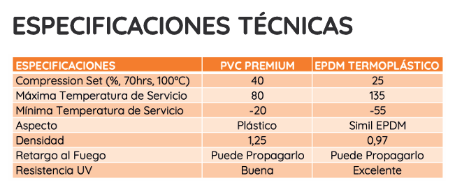 CNP ofrece 2 Calidades: PVC Premium y EPDM Termoplástico